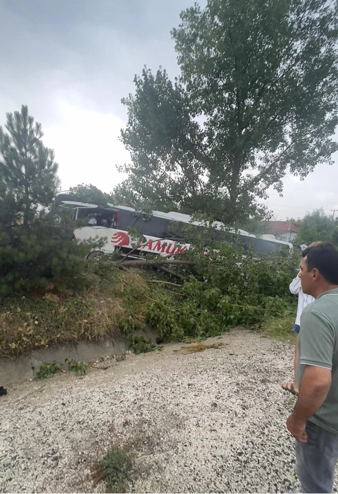 Kazada, otobüste yolcu olarak bulunan 10 kişi yaralandı.
