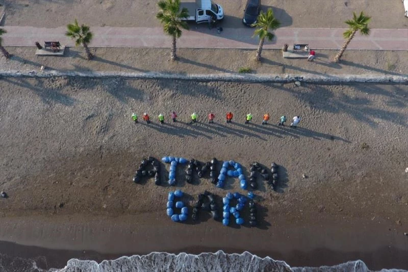 ANTALYA (AA) - Antalya'nin Finike Ilçe Belediyesi ekipleri, çevre temizligine dikkat çekmek amaciyla sahil ve koylardan topladiklari çöpleri kullanarak "artik atmayin" anlamina gelen yöresel siveyle "Atman gari" yazdi.
