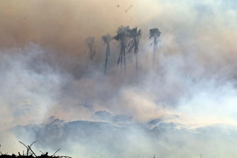 Antalya’daki moloz yangınında gökyüzü bulutla kaplandı, güneş kızıla döndü
