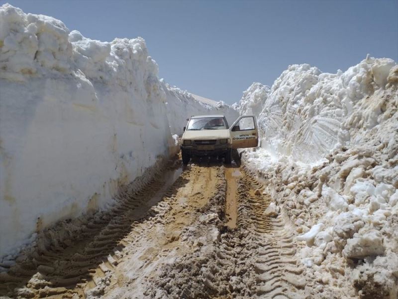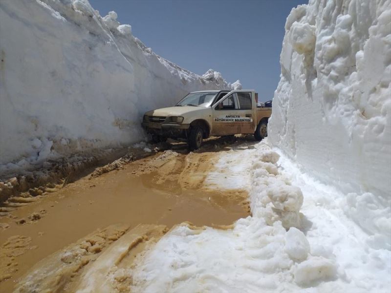ANTALYA (AA) - Antalya'nin Akseki ilçesi Göktepe Yaylasi'nda yüksekligi 4,5 metreye ulasan karla kapanan yol, belediye ekiplerince açilmaya çalisiliyor.