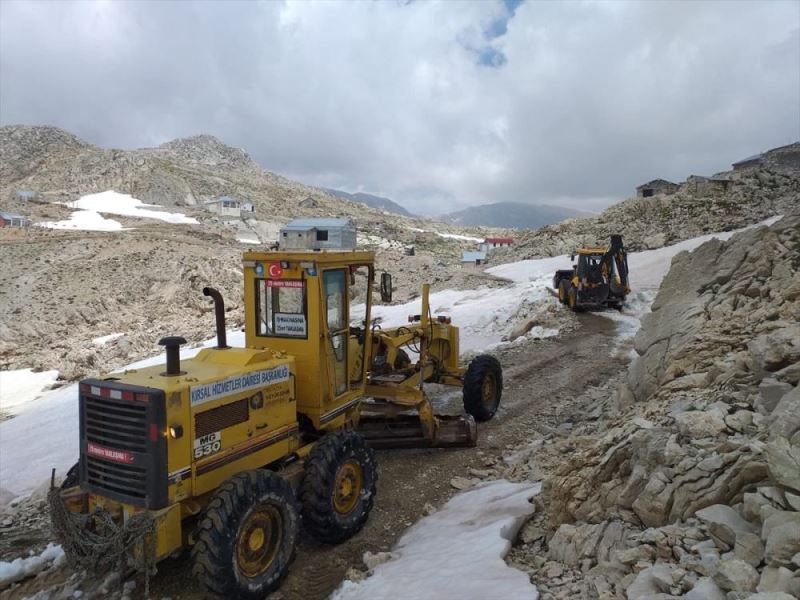 Morca Yaylasi yolunda bir yandan düzenleme yapilirken diger yandan yolun 20 kilometrelik karli kisimlarinda yol açma çalismasi sürüyor.