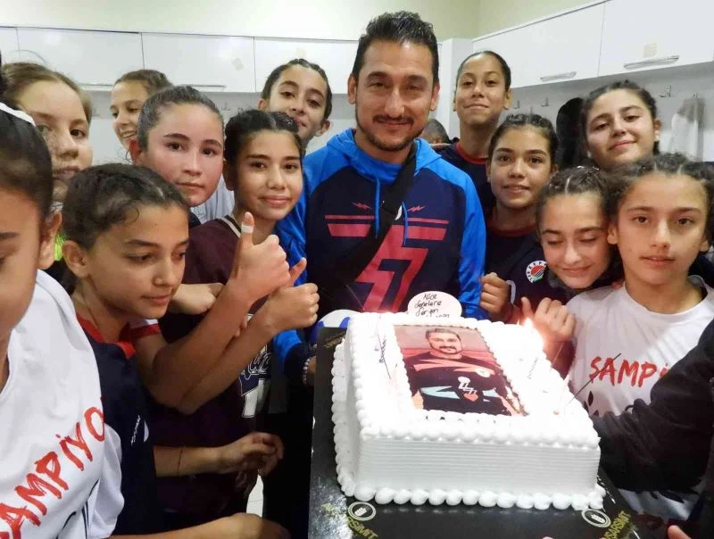 Kepez Belediyesi Spor Kulübü Hentbol Takımları Başantrenörü Sertan Sarpaş, kazandıkları maç sonrası oyuncularının ve ailelerinin doğum günü kutlama sürpriziyle çifte sevinç yaşadı.