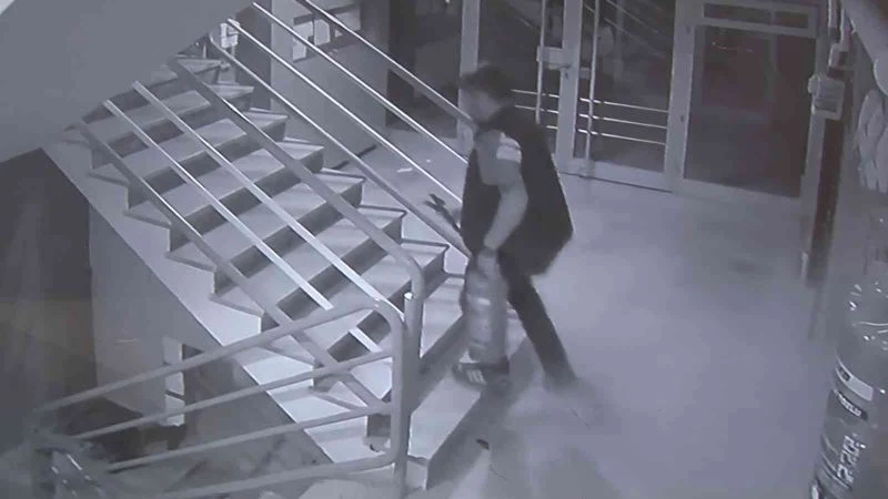 Esenyurt’ta kimliği belirsiz bir şahıs, bir sitedeki gençleri kovalayarak girdiği apartmanın yangın tüplerini alıp etrafa sıktı. Bir dairenin önündeki ayakkabıları bıçakla parçalayan şüpheli, park halindeki aracın üstüne çıkarak site duvarından atlayıp kayıplara karıştı. Yaşananlar ise apartmanın güvenlik kamerasına yansıdı.