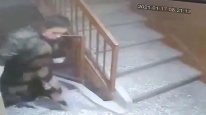 Apartmandan ayakkabı hırsızlığı güvenlik kamerasında