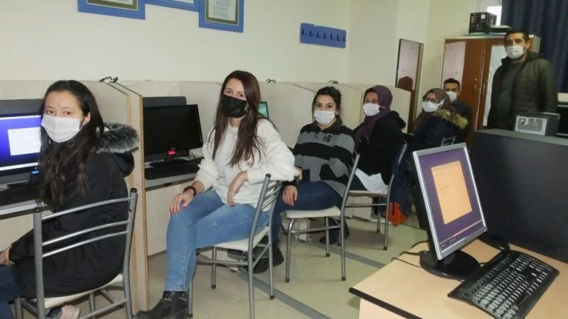 Halk Eğitim Merkezi Müdürlüğü tarafından salgın sebebiyle ara verilen kurslar tekrar başlatılırken, evlerde sıkılan vatandaşlar kurslara yoğun ilgi gösterdi. Halk Eğitim Merkezi Salonundaki kursa 10 kişi devam ederken, kursun Mart ayı sonunda tamamlanacağı açıklandı.