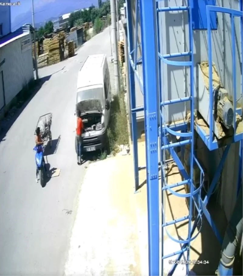 Bursa’nın İnegöl ilçesinde, park halindeki bir aracın akülerini çalan hırsızlar güvenlik kamerasına yakalandı.