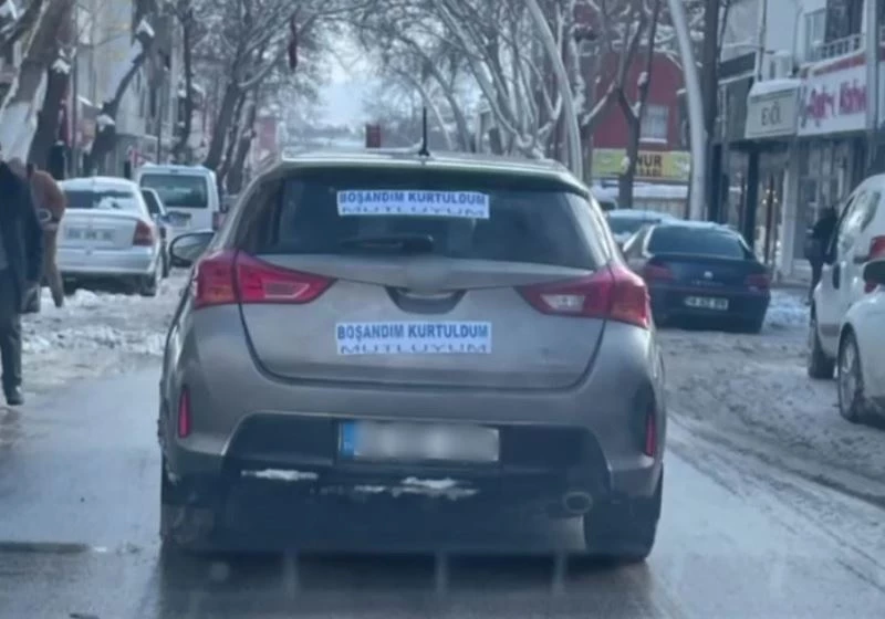Kahramanmaraş’ın Elbistan ilçesinde eşinden boşanan bir vatandaş, eşinden boşandıktan sonra arabasının arka camına yazdığı ‘Boşandım kurtuldum, mutluyum’ yazısı ile şehir turu attı.