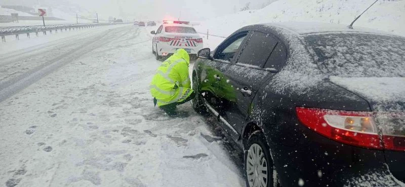 Araçlarıyla yolda kalan sürücülerin yardımına jandarma koştu