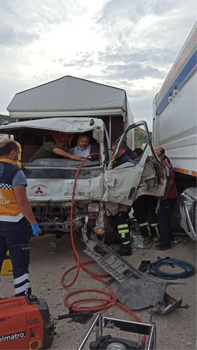 Burdur-Karamanlı karayolu Karaçal mevkiinde yer alan yol yapım şantiyesinden çıkan Cengiz Yücel yönetimindeki 07 AAK 803 plakalı kamyon, Oktay Serttaş idaresindeki 15 SE 701 plakalı kamyonetle çarpıştı. Kazada yaralanan sürücü Serttaş ve yanındaki Mustafa Kemal Yırtıcı, kamyonette sıkıştı. 112 Acil Servis ekipleri yaralıları kamyonetten çıkaramayınca itfaiyeden yardım istedi. Bir bölümü kamyonun dorsesine sıkışan kamyonet, şantiyedeki kepçe yardımıyla çekilerek çıkarıldı. Burdur’dan sevk edilen itfaiye ekibi de kamyonetin direksiyon, vites kolu ve çeşitli bölümlerini keserek yaralıları sıkıştığı yerden kurtardı. Sağlık ekiplerince Burdur Devlet Hastanesine kaldırılan yaralıların hayati tehlikesinin olmadığı öğrenildi.