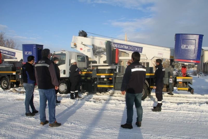 Aras EDAŞ, müşterilerine kesintisiz enerji verme misyonuyla sorumluluk bölgesindeki zorlu kış koşullarında arızalara hızlı bir şekilde müdahale edebilmek, bakım ve onarım çalışmalarında kullanılmak üzere sepetli vinç araçlarını devreye aldı. Ulaşılması tehlikeli ve riskli yerlere güvenli bir şekilde erişilmesine olanak sağlayan araç, aynı zamanda insan gücünün olabilecek en verimli şekilde kullanılmasına ve zamandan tasarruf edilmesine olanak tanımaktadır.