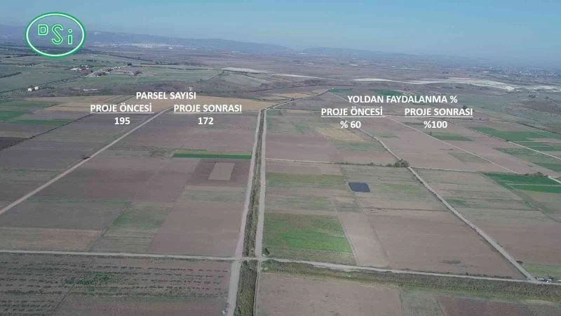 Proje öncesinde mevcut arazi yollarından parsellerin faydalanma oranı ortalama yüzde 60 iken DSİ’ce yapılan arazi toplulaştırması ile bu oran yüzde 100 seviyesine çıktı.