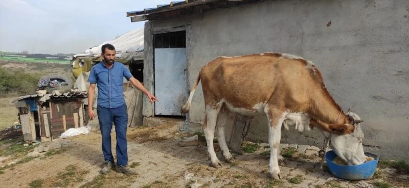 Kocaeli’in Dilovası ilçesinde otlamak için araziye çıkarılan büyükbaş hayvanlar,