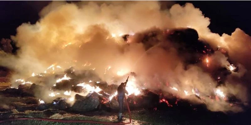 Muğla’nın Milas ilçesi Bafa mahallesinde bir arazide istifli halde bulunan saman balyaları ateş aldı.