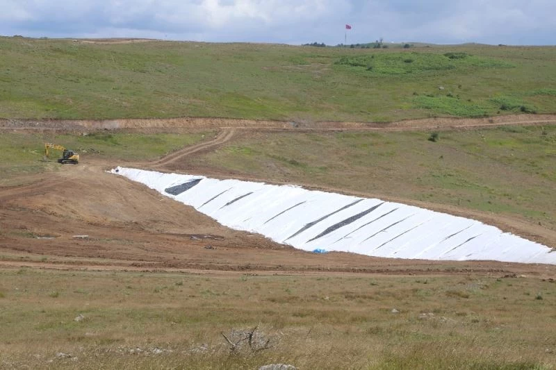 Ordu’nun Akkuş ilçesine bağlı 1650 rakımlı Argan Yaylası’nda yapılan göletteki çalışmalar devam ediyor.