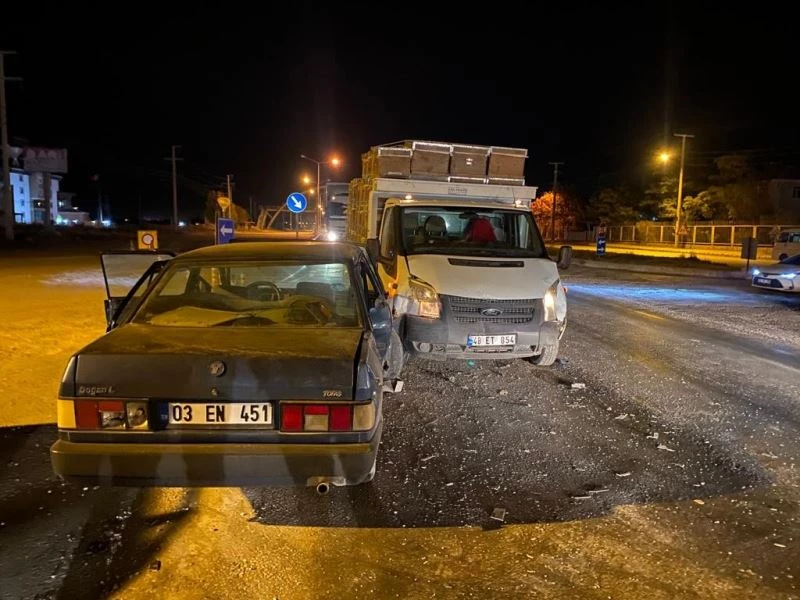 Kaza, Bolvadin Sanayi Sitesi kavşağında meydana geldi. Edinilen bilgilere göre, H.T.Ç., (19) idaresindeki 03 EN 451 plakalı otomobil kavşakta henüz belirlenemeyen bir sebepten ötürü Ş.S.’nin kullandığı 48 ET 854 plakalı arı kovanı yüklü kamyonet ile çarpıştı. Çarpışmanın etkisi ile savrulan otomobil olay yerinden birkaç metre ilerde durabildi. Kazanın ardından çevredekilerin haber vermesi ile olay yerine jandarma ve 112 Acil servis ekipleri sevk edildi. Olay yerine gelen ekipler kazada yaralanan otomobil sürücüsü H.T.C., ile araçta yolcu olarak bulunan A.K., (27) ambulanslar ile Bolvadin Devlet Hastanesi’ne kaldırıldı. Yaralıların sağlık durumlarının iyi olduğu öğrenildi.