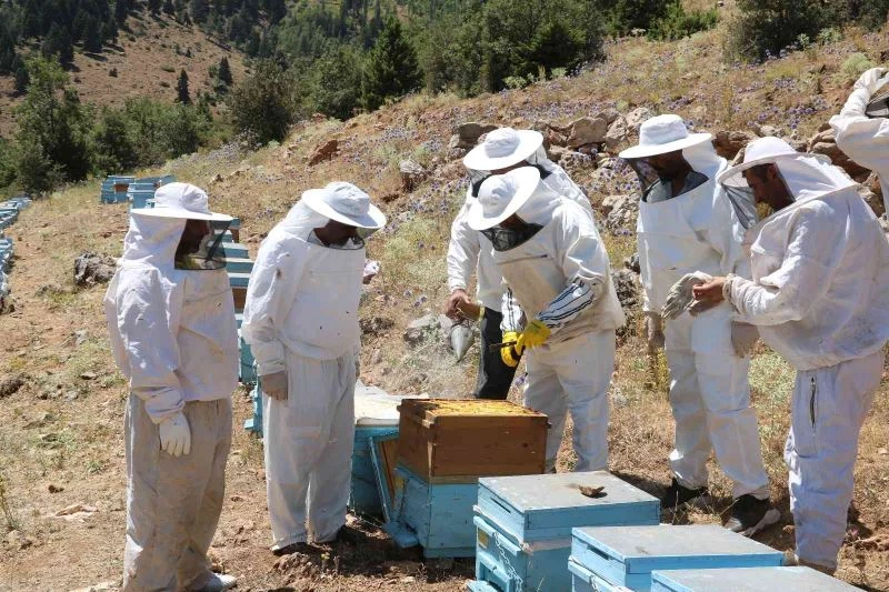 Kahramanmaraş’ın Göksun ilçesi 2 bin 300 rakımlı Binboğa Dağları’nın eteğindeki Esenköy Yaylası’na 5 ay önce yüzlerce kovan bırakan üreticiler, bal sağımına başladı.