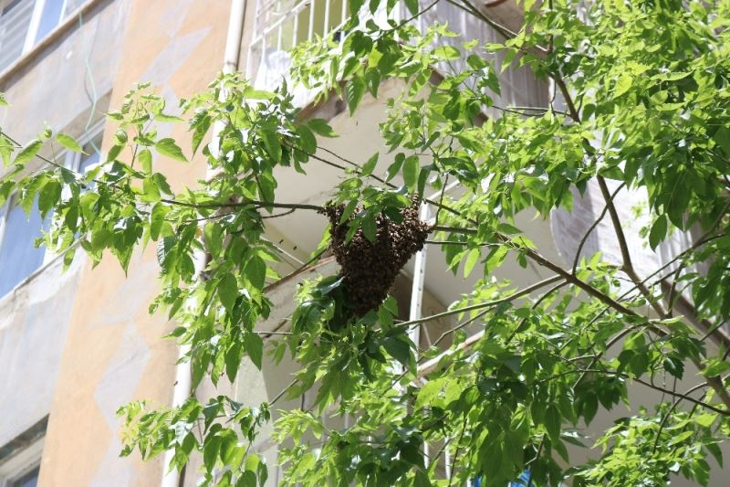 Arılar bina girişindeki ağaca yuva yaptı vatandaşlar paniğe kapıldı