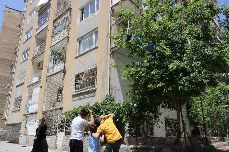 Diyarbakır’ın Yenişehir ilçesinde arılar bir binanın bahçesinde bulunan dut ağacına yuva yaptı. Apartman sakinleri arıların kendilerini sokmasından korktuklarını belirterek yetkililerin yuvayı ağaçtan almasını istedi.
