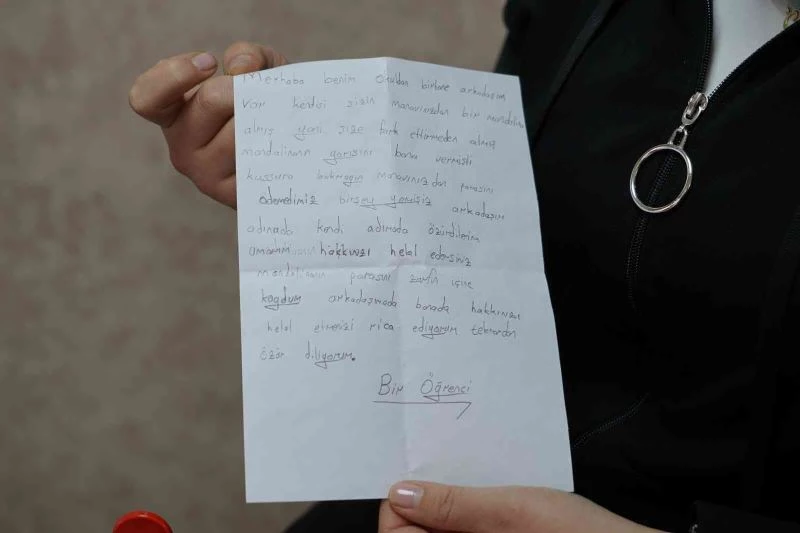 Kastamonu’da, arkadaşının kendisiyle paylaştığı mandalinayı manavdan ücret ödemeden aldığını öğrenen öğrenci, özür dilemek için mektup yazıp 2,5 TL ile zarfın içine koyarak manavın tezgahına bıraktı. Öğrencilerin davranışı karşısında şaşkınlık yaşayan işyeri sahibi, mektubu okuyunca duygulandığını söyledi.