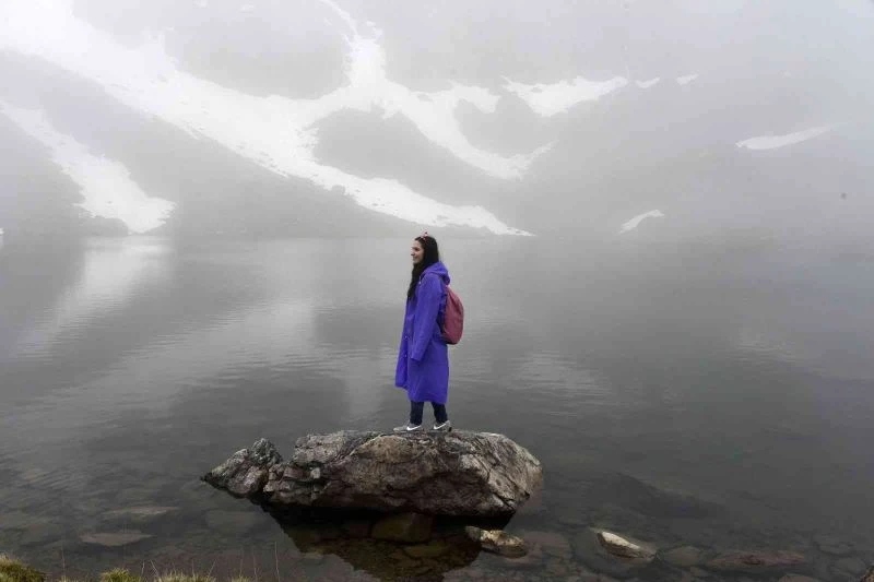 Her yıl olduğu gibi bu yıl da eşsiz güzelliklerin tadını çıkaran 81 sporcu Gülaçar köyü Esentepe yaylasına kadar araçla ulaştıktan sonra buradan dolu ve yağmur yağışıyla başladıkları yürüyüşte ilk olarak 2 bin 720 metre rakımdaki Büyük göle ulaştı.