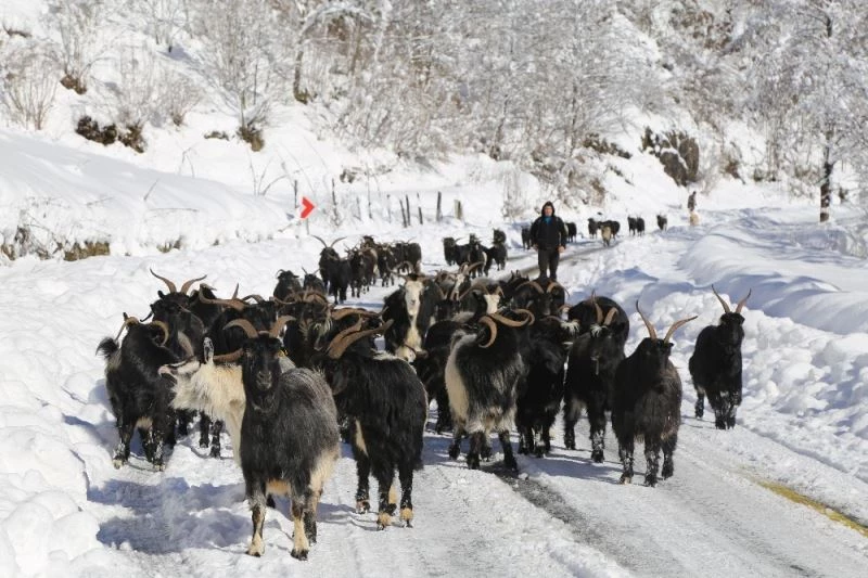 Besicilik yapan Yasin Çelik, kar yağışının ardından havaların açmasıyla 100 küçükbaş hayvanını karla kaplı yollarda günlük 10 kilometre yürüterek otlatıyor. Havanın açmasıyla her gün hayvanları karın az olduğu bölgeye götürdüklerini ifade Çelik, “Hayvanları her gün dere kenarına götürüyoruz. Oralarda çalı ve dikenleri açıp karınlarını doyuruyorlar. Keçi hayvanın gezmeyi sevdiğinden, yaz kış genelde dışarıda otluyorlar. Bazen çok kar yağında içeride beslemek zorunda kalıyoruz” diye konuştu.