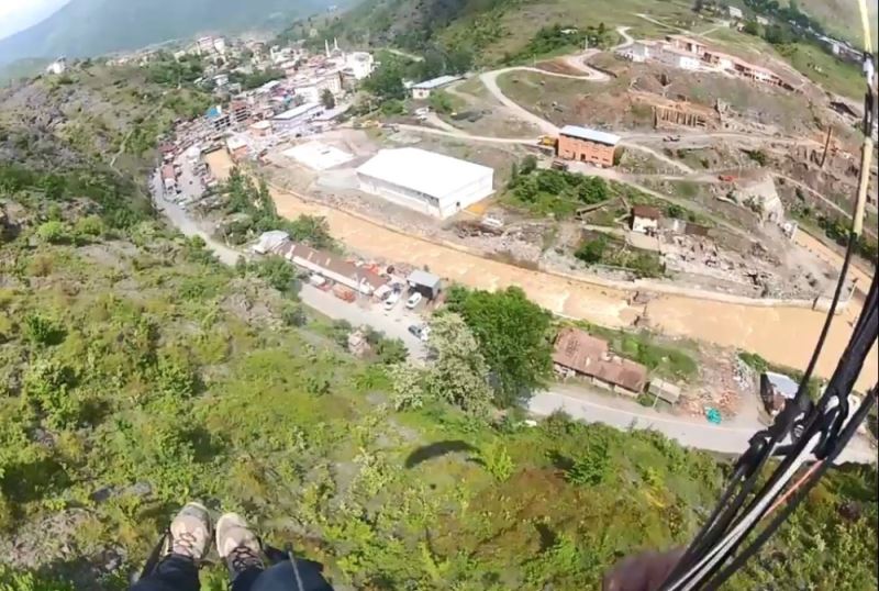 Doğu Karadeniz’de son yıllarda artan yamaç paraşütü sporu, Artvin bölgesinde de sıkça yapılmaya başladı. Murgul’un Damar köyüne çıkan bir grup arkadaş, yamaç paraşütüyle atlayış gerçekleştirdi. İlçe şehir stadına inmeyi hedefleyen paraşütçülerden Haluk Erdoğan, irtifa kaybı yaşadı. Yakında bulunan alana inmeye çalışan Erdoğan, bölgede faaliyette bulunan bir fabrikanın çatısına iniş yapmak zorunda kaldı.