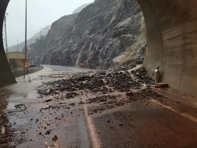 Artvin’de heyelan nedeniyle sürücüler tünelde mahsur kaldı