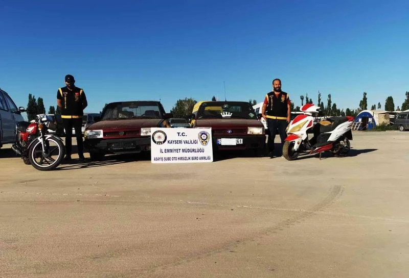 Kayseri İl Emniyet Müdürlüğü Asayiş Şube Müdürlüğüne bağlı Oto Hırsızlık Büro Amirliği ekiplerince, kentte meydana gelen oto hırsızlıklarıyla ilgili yapılan çalışmalarda 2’si motosiklet 5 çalıntı araç bulundu. Araçların çalınma anları güvenlik kameralarınca kaydedilirken, polis olayın faillerine 600 saatlik kamera kaydı inceleyerek ulaştı.