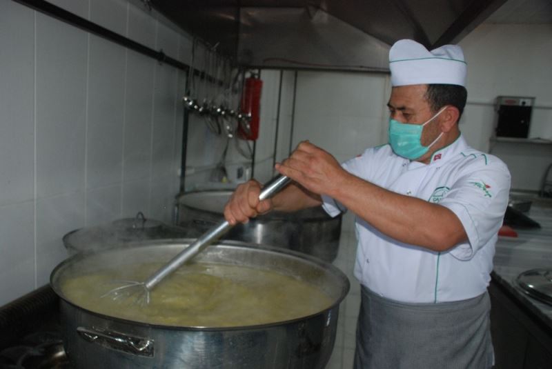 Korona virüs salgını önlemleri kapsamında aşevinin mutfak kısmında tedbirlerin üst seviyede alındığına dikkat çeken Başkan Karagöl, “Özellikle mutfak kısmında sosyal mesafe korunarak maske, bone ve galoşla giyilerek çalışılıyor. Sürekli dezenfektan çalışmaları yapılıyor, hijyen içerisinde bir mutfak ortamımız var” ifadelerini kullandı.