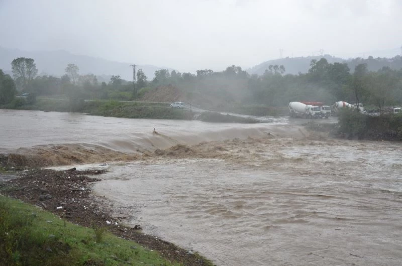 Ordu’nun yüksek kesimlerinde etkili olan şiddetli yağış yol kaymalarına ve derelerin taşmasına sebep oldu.