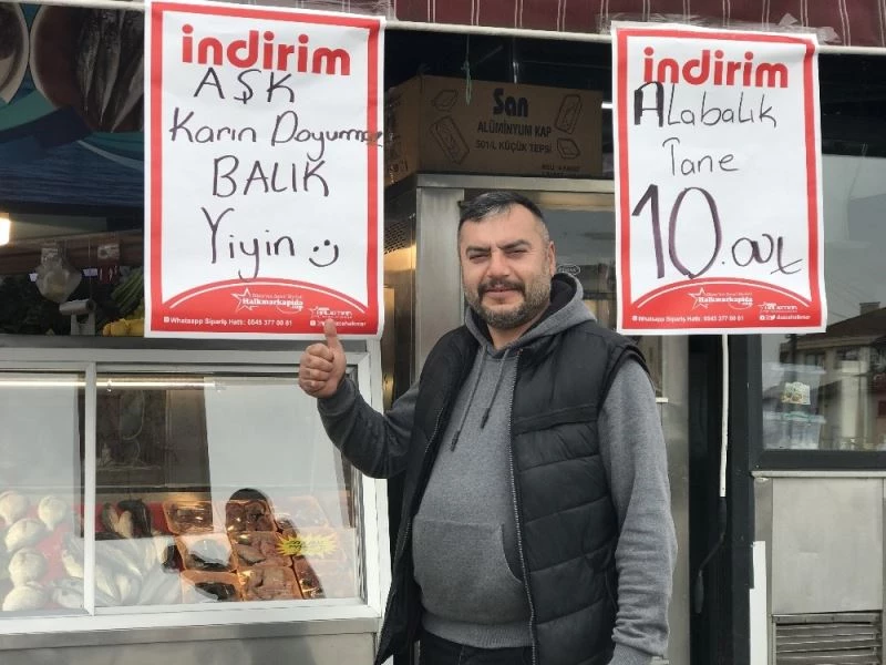 Balığa talebi artırmak için tezgahına astığı yazılarla da görenleri gülümsetti. Pandemi döneminde balık tüketilmesi gerektiğinin altını çizen balıkçı Kılıç, “Tezgahımıza çeşitli yazılar astık. Görenlerin dikkatini çekmesini böylelikle balığa rağbetin artmasını istiyoruz. Aşkın karın doyurmadığı balık yenmesi gerektiğini, virüs savar hamsi geldiğini yazdık. Ciddi anlamda bu dönemde hamside bulunan o yağ alınmalı ve vücuda girmeli diye düşünüyoruz. Biz de her gün balık yiyoruz bu nedenle” diye konuştu.