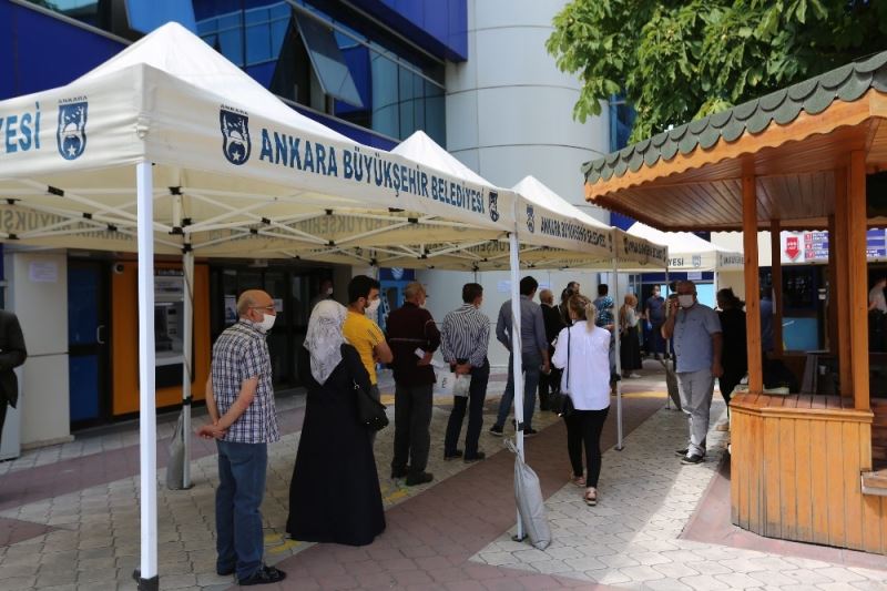 Ankara Su ve Kanalizasyon İdaresi (ASKİ) Genel Müdürlüğü, pandemi süreci nedeniyle merkez ve taşra teşkilat binalarında bir dizi sağlık önlemi aldı. Yeni abonelik işlemleri, fatura ödeme ve sayaç okuma itirazı için günlük yaklaşık 5 bin kişinin ziyaret ettiği ASKİ’de kalabalık ortamların oluşmaması için sıra bekleyen vatandaşlar için bina dışında çadırlar kuruldu.