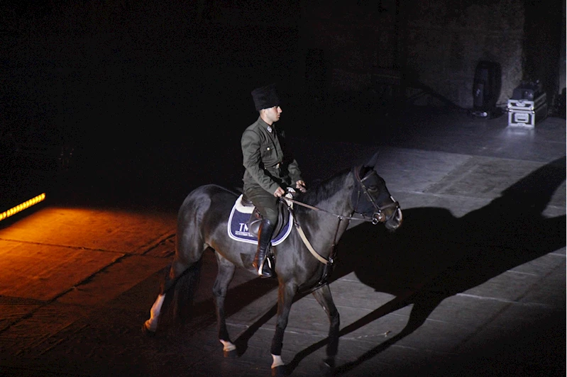 Programda, halk oyunları ve dans gösterileri seyirciyle buluşturuldu. Tarihi Aspendos surlarına Türk bayrağı yansıtıldığı sırada, dağcıların ellerindeki bayrak ve Atatürk posteriyle burçlardan inmesi beğeni topladı.
