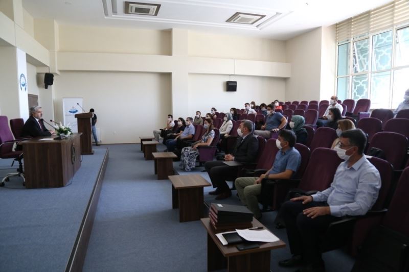 ASÜ Rektörü Şahin, 2020 yılı Bilimsel Araştırma Projeleri (BAP) kapsamında destek alan akademisyenlerle bir araya geldi. 41 projenin desteklendiğini ve bu projelerden 37’sinin araştırma, dördünün ise lisansüstü proje olduğu kaydeden Prof. Şahin, “Emek veren tüm arkadaşlarımıza teşekkür ediyor, çalışmalarında başarılar diliyoruz” dedi. Kasım ayında düzenlenecek olan Uluslararası Aksaray Sempozyumuna dikkat çeken ve bu çalışmanın ileriye dönük çıktılarını değerli bulduklarını söyleyen ASÜ Rektörü, dört yıldır sosyal bilimler eksenli gerçekleştirilen sempozyumun, bu yıl diğer alanlardan da bildiri kabul edeceğini aktardı. Şu ana kadar 300’ün üzerinde bildiri ile önemli bir birikimin ortaya çıktığını anımsatan Prof. Şahin, “Amacımız Aksaray’la alakalı, bilimsel denetimi yapılmış bir ‘e-Aksaray Ansiklopedisi’ oluşturmak. Bu nedenle sempozyumun kapsamını genişlettik” dedi. Açıklamasının son bölümünde yeni eğitim-öğretim dönemine dair hazırlıklardan da söz eden Şahin, “Uzaktan öğretim, yüz yüze öğretim veya ikisinin birleştirilmesi Biz, yeni eğitim-öğretim dönemi için uygulanacak her ihtimale hazırız. Senkron ve asenkron dersler için gerekli olan altyapımızı gün geçtikçe daha da geliştiriyoruz” diye konuştu.
