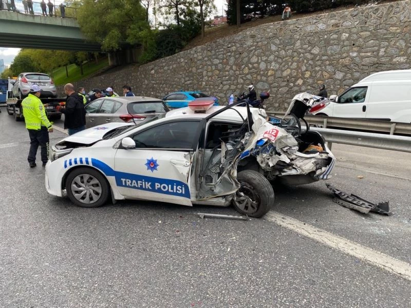 Ataşehir’de TEM yan yolda başka bir sürücü tarafından sıkıştırılan kadın sürücü, yolda uygulama yapan polis memuruna, ardından polis otosuna çarptı. Kazada polis memuru ile kadın sürücü yaralandı.