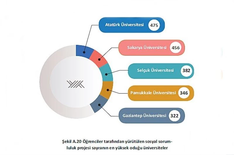 Ürettiği 475 sosyal sorumluluk projesi ile Atatürk Üniversitesi ilk sıraya yerleşirken Sakarya Üniversitesi 456 proje ile ikinci, Selçuk Üniversitesi 382 proje ile üçüncü, Pamukkale Üniversitesi 346 proje ile dördüncü ve Gaziantep Üniversitesi 322 proje ile beşinci sırada yer aldı.