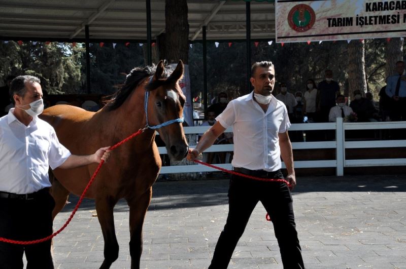 Bursa’nın Karacabey ilçesinde bulunan harada, Karacabey’de yetiştirilen Arap Yarış Tayları satışa çıkartıldı. Toplam 82 taydan 46’sının satıldığı açık artırmalarda TİGEM 3 milyon 101 bin lira gelir elde etti. Açık artırmada ’Serhat Fırtınası’ isimli tay İsmail Altın tarafından 220 bin liraya satın alındı. ’Alevkıran’ isimli tay 170 bin liraya Ergün Fırat’a, ’Yıldırımalp’ isimli tay İsmail Altın’a 170 bin TL’den satılırken ’Öz Bulut’ isimli tay ise 160 bin liraya Abdullah Yazıcı tarafından satın alındı. Açık artırmada en düşük tay 15 bin liraya satılırken, 36 tay ise alıcı bulamadı.