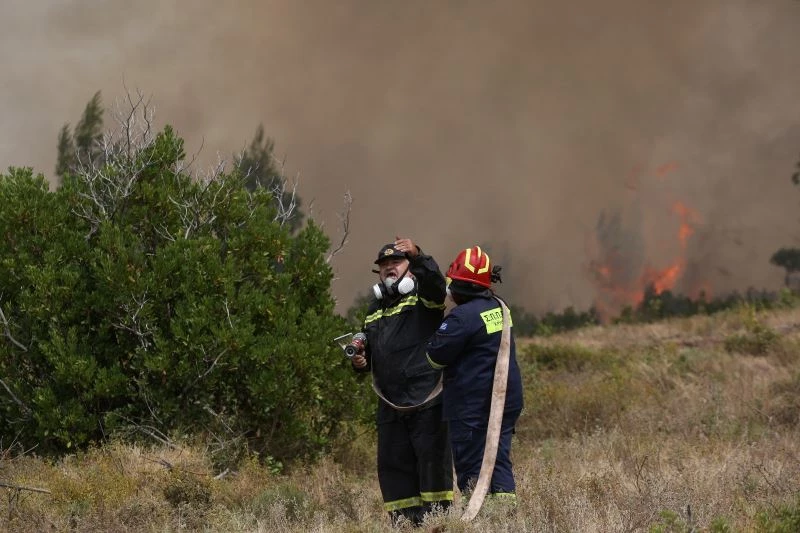 Sıcaklıkların rekor seviyeye çıktığı Yunanistan’da orman yangınlarıyla mücadele sürüyor. Atina Ulusal Gözlemevi (NOA), bugün sıcaklıklarda önemli bir düşüş beklenmesine rağmen rüzgarların şiddetini arttıracağı ve orman yangını riskinin "çok yüksek" olduğu konusunda uyarıda bulundu. Başkent Atina’nın kuzeyinde gece saatlerinde alevlerin yeniden yükselmesi sonucu binlerce insan şehri terk ederken, itfaiye ekipleri gece boyunca alevlerin yerleşim bölgelerine, elektrik tesisatlarına ve tarihi mekanlara sıçramaması için yoğun çaba harcadı. Toplam 450 itfaiyeci, 40 yer ekibi, 150 itfaiye aracının yanı sıra 3 helikopter ve 7 uçak söndürme çalışmalarında yer aldı. Başkentin kuzeyindeki çalışmalara Fransa ve Kıbrıs’tan gelen itfaiyeciler de destek verdi. Ülkenin ana karayolunun birçok noktasında trafik dururken, patlayan kozalaklar otoyol kenarına sıçrayarak yeni yangına yol açtı. Demiryolu seferlerinin de aksadığı bölgede, Atina ve çevresinde elektrik kesintileri yaşandı. Atina’nın kuzeyindeki Ritsona kampından da yaklaşık 2 bin göçmen ve mülteci, başka bir tesise tahliye edildi.