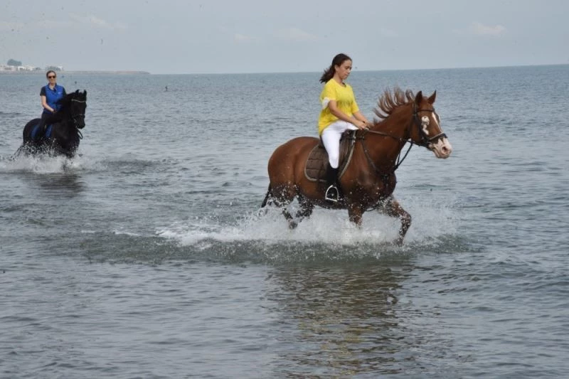 Büyükşehir Belediyesi Atlı Binicilik Spor Tesisleri antrenörleri ve binicilileri at üzerinde yaptıkları antrenmanları sahile taşıdı. Tesis antrenörleri ve binicileri eşliğinde Atakum ilçesi Çobanlı iskelesi mevkiinde denize sokulan atlar, vatandaşların da ilgi odağı oldu. Denizden çıkıp dörtnala koşan atlar zaman zaman kum banyosu yaptı. Seyrine doyum olmayan görüntülerin yaşandığı sahilde denize giren atları gören vatandaşlar o anları ilgiyle izledi.