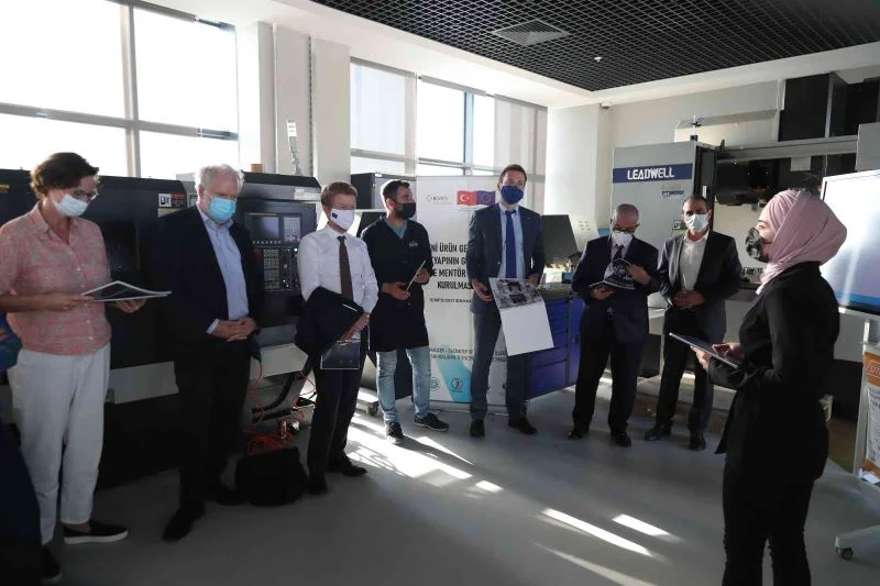 Hasan Kalyoncu Üniversitesi’ni (HKÜ) ziyaret eden Avrupa Birliği (AB) delegasyonuna; AB tarafından fonlanan ve Uluslararası Göç Politikaları Geliştirme Merkezi (ICMPD) tarafından, T.C Sanayi ve Teknoloji Bakanlığı ve İpekyolu Kalkınma Ajansı koordinasyonuyla yürütülen, Türkiye’deki Mülteciler için Mali Yardım Programı (FRIT)-ENHANCER Projesi kapsamında HKÜ tarafından uygulanmakta olan projeler hakkında detaylı bilgiler verildi.