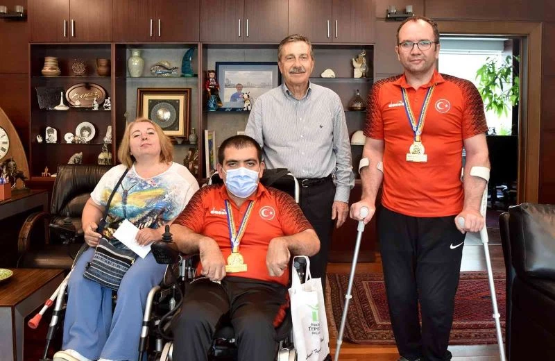 Tepebaşı Belediye Başkanı Dt. Ahmet Ataç, Romanya’da düzenlenen Para Bilek Güreşi Avrupa Şampiyonası’nda altın madalya kazanan Eskişehir Engelliler Spor Kulübü sporcuları Murat Cırık ve Arif Başar Durak ile bir araya geldi.