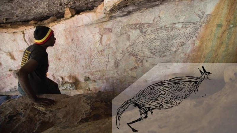 Avustralya’nın batısında yer alan ve Aborijin kaya resimleri ile tanınan Kimberley bölgesinde bilim insanları, bir kayalık mağaranın tavanına çizilmiş 2 metre boyunda ve 17 bin 300 yaşındaki bir kanguru kaya çizimini keşfetti. Çizimin Avustralya’nın en eski kaya çizimi olduğu kaydedildi.