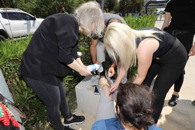 Akdeniz Üniversitesi kampüsünde ayağı burkulan öğrenciye ilk müdahaleyi Rektör Prof. Dr. Özlenen Özkan yaptı.