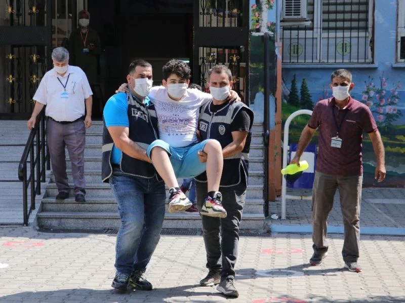 Ayağı kırık çocuğu sınav salonuna polisler kucaklayarak götürdü