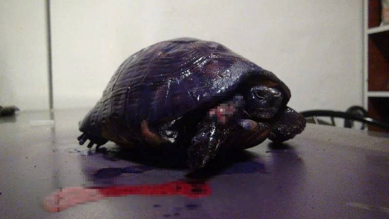 Hayvanı tedavi eden veteriner Yusuf Yıldızgil ise, "Kaplumbağa ayakları ve sırtı yanmış halde geldi. Yaraları kurt bağlamış sinek toplamıştı. Gerekli temizlik ve tedavisini yaptık. İnşallah, yaraları iyileşir, hayvan yeniden kendisine gelir. muhtemelen yanmış ancak ayakları yanmış sırtındaki koruyucu kabuğuda yanmışl halde geldi yaralar artık kurt ve sinek toplamış halde idi tedavisini ve temizliğini yaptık inşallah iyileşir, hayvan sağlığına kavuşur. İnsan gibi yaşamayı öğrenmemiz yeterli olur. Başka bir söze hacet kalmaz. Hayvanlar da can taşıyor, unutmayalım" diye konuştu.