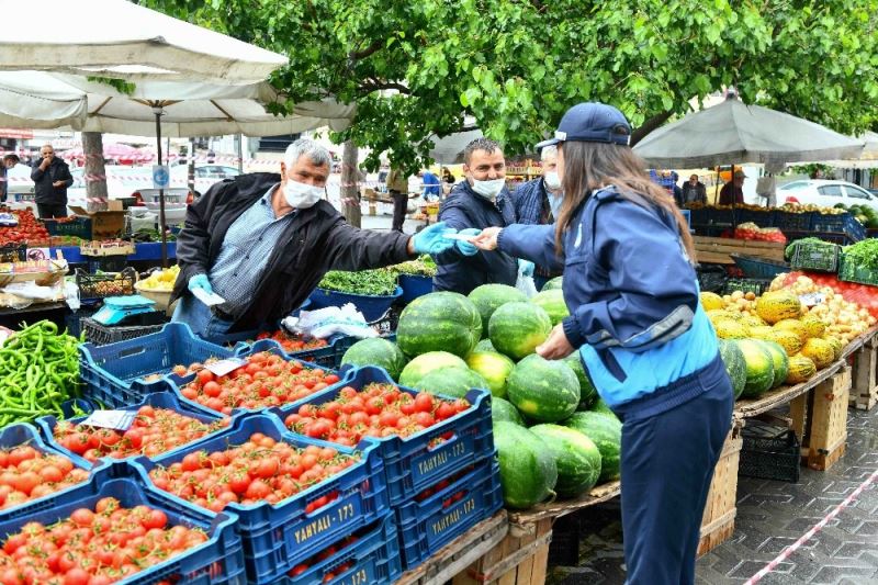 Pazarcı esnafı Fatma Taşdemir ve Serdar Heptaş, dezenfeksiyon çalışmaları ile maske dağıtımı için teşekkür etti.