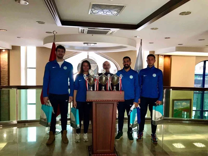 AYBÜ Şampiyonlarını sevincini Genel Sekreter Öztürk ile paylaştı
