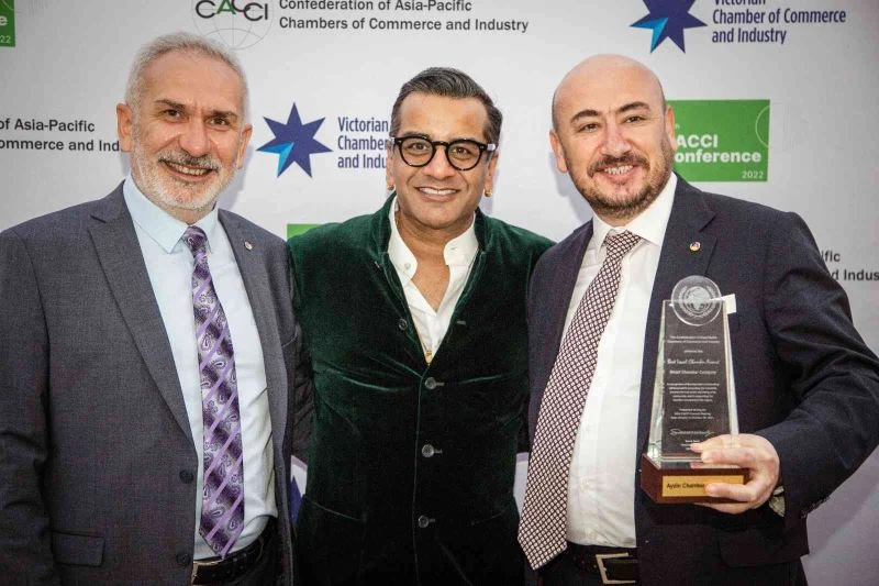 Asya-Pasifik Ticaret ve Sanayi Odaları Konfederasyonu (CACCI) tarafından Avustralya’nın Melbourne şehrinde düzenlenen 36. CACCI Konferansı’nda, “Ticaret Odaları Yeni Ekonomiyi Nasıl Tanımlayacak” teması öne çıkarken, Aydın Ticaret Odası, iline ve üyelerine yönelik yaptığı hizmetlerle Asya-Pasifik Bölgesi’nin ‘En İyi Oda’sı seçildi. Konferans sonunda 28 ülkeden gelen iş insanlarının katılımıyla düzenlenen gala gecesinde verilen birincilik ödülünü TOBB Yönetim Kurulu Üyesi ve AYTO Başkanı Hakan Ülken ve AYTO Meclis Başkanı Coşkun Cerit aldı.