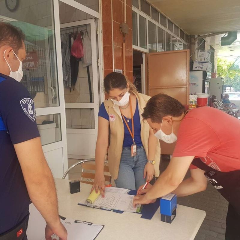 İçişleri Bakanlığı tarafından 81 ilde eş zamanlı olarak yapılan yeni tip Korona virüs tedbirleri kapsamında Aydın’ın Efeler ilçesinde 977 iş yeri Efeler Kaymakamlığı ve Efeler Belediyesi ekipleri tarafından denetlendi.