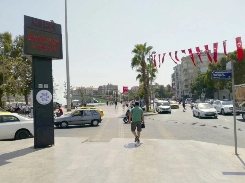 Türkiye’nin en sıcak illerinden olan Aydın’da, Eylül ayında da termometreler 42 dereceyi gösterdi. Hava sıcaklıkları mevsim normallerinin üzerinde seyretmeye devam ederken, sıcaklıkların son yıllarda Eylül ayında kaydedilmiş en yüksek sıcaklık değerlerinde seyretmeye devam ediyor. Atatürk Kent Meydanı’nda bulunan termometrede 42 dereceyi gören Aydınlı vatandaşlar da çareyi park ve bahçelerdeki gölgelik alanlarda buldu. Banklara oturarak serinleyen vatandaşlar, Eylül ayında sıcaklıkların bu seviyelerde olmasının normal olmadığını ifade etti.